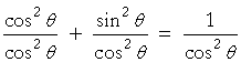 That is, according to the definitions, cos2θ + sin2θ = 1. . . . .(2) Apart from the order of the terms, this is the first Pythagorean identity, a). To derive b), divide line (1) by x2; to derive c), divide by y2. Or, we can derive both b) and c) from a) by dividing it first by cos2θ and then by sin2θ. On dividing line 2) by cos2θ, we have